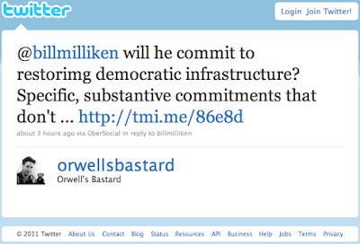 One can't form a comprehensive impression of someone based on a handful of tweets, of course, but Mr. Milliken strikes me as a reasonable man. I don't think he means to suggest that democracy begins and ends with Parliament, but this last message from him seems a little vague.